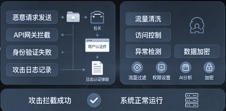 API攻击主要分两大类,找准类型才能精准防护:一类是流量型攻击,比如DDoS、CC攻击,靠海量恶意请求耗尽服务器带宽和算力,直接导致API服务中断,中小平台和流量高峰期极易中招;另一类是应用层攻击,包括SQL注入、权限绕过、恶意爬取等,这类攻击更隐蔽,专门钻接口漏洞窃取核心数据,对金融、电商类API威胁最大。传统防火墙仅能做基础网络过滤,无法深度解析API协议,根本挡不住这类针对性攻击。